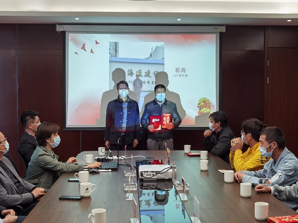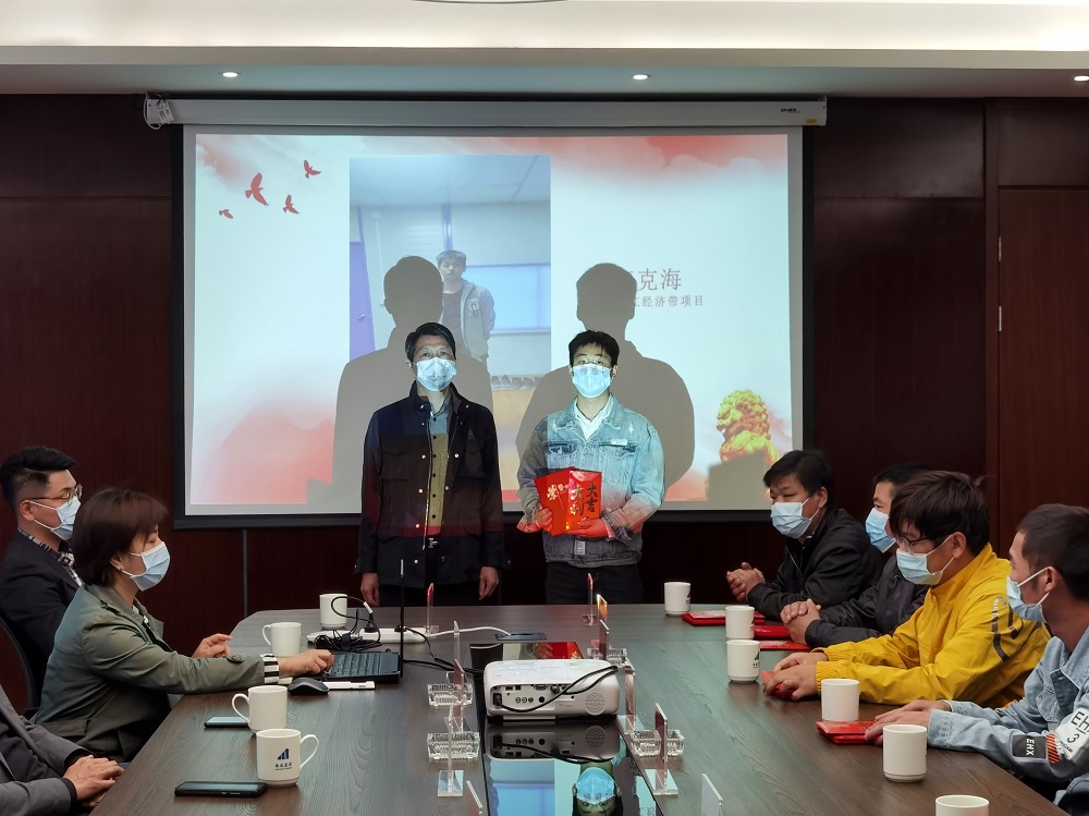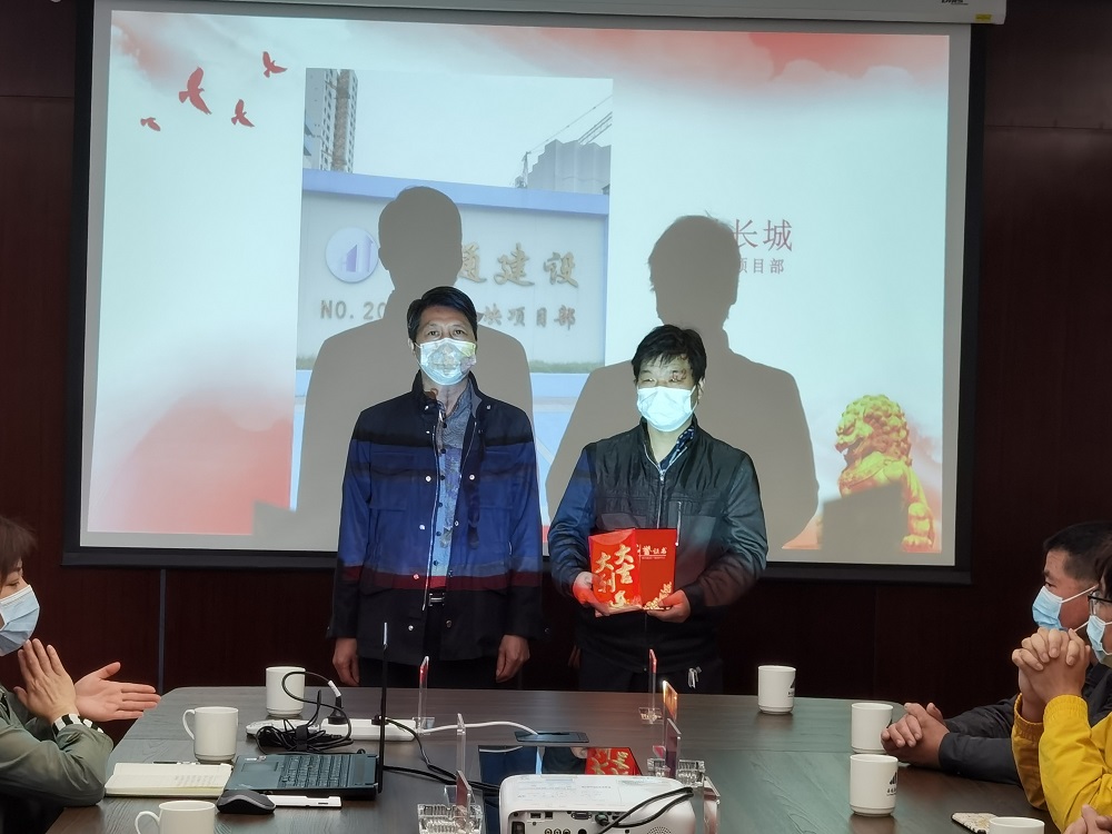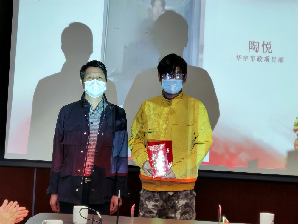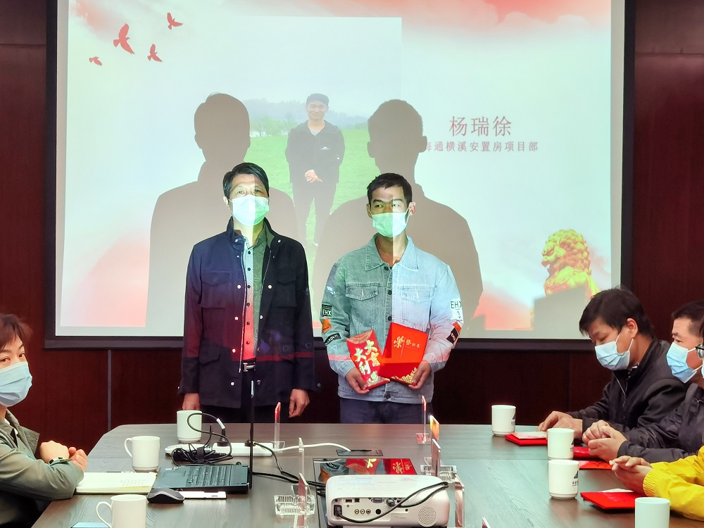 表彰会上,丁总为凯旋的五位英雄颁发了荣誉证书及抗疫奖金。